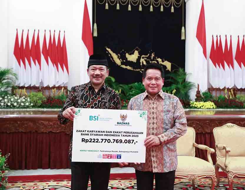 Pada 2021, zakat perusahaan yang disalurkan oleh BSI mencapai Rp123,2 miliar, kemudian meningkat menjadi Rp173,1 miliar pada 2022, dan Rp222,7 miliar pada 2023.