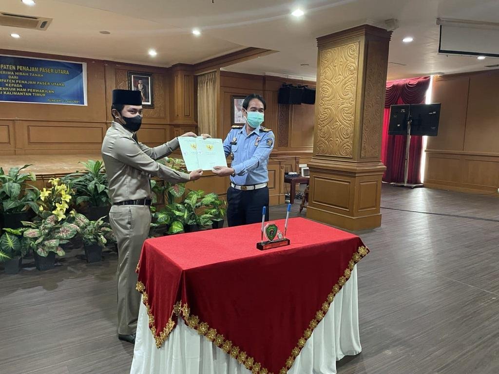 Selasa (13/7/2021) siang tadi pun telah dilangsungkan kegiatan penyerahan hibah tanah oleh Pemerintah Kabupaten Penajam Paser Utara (PPU) kepada Kanwil Kemenkumham Kaltim yang rencananya akan menjadi lokasi gedung baru Rutan dan Lapas yang akan dibangun.