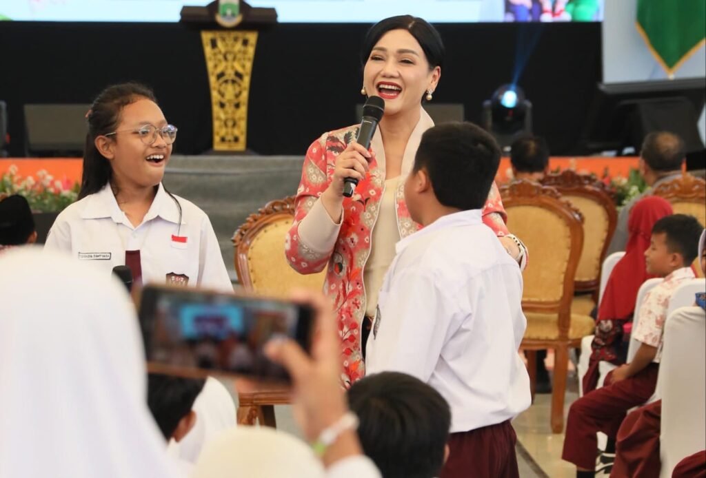 “Cara yang paling tepat yaitu dengan bercerita,” tutur Friderica yang tampil berdialog dengan ratusan murid SD di Provinsi Banten dalam rangka memperingati Hari Anak Nasional 2024, Jumat (26/7/2024).