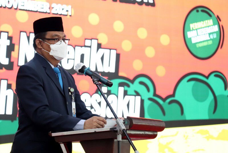 “Tentu pelaksanaan peringatan HKN ke-57 merupakan momentum untuk bersyukur, karena Indonesia menjadi salah satu negara yang berhasil menurunkan lonjakan kasus Covid-19 yang disebabkan adanya mutasi virus,” ungkap HM Sa’bani membacakan sambutan Menteri Kesehatan.