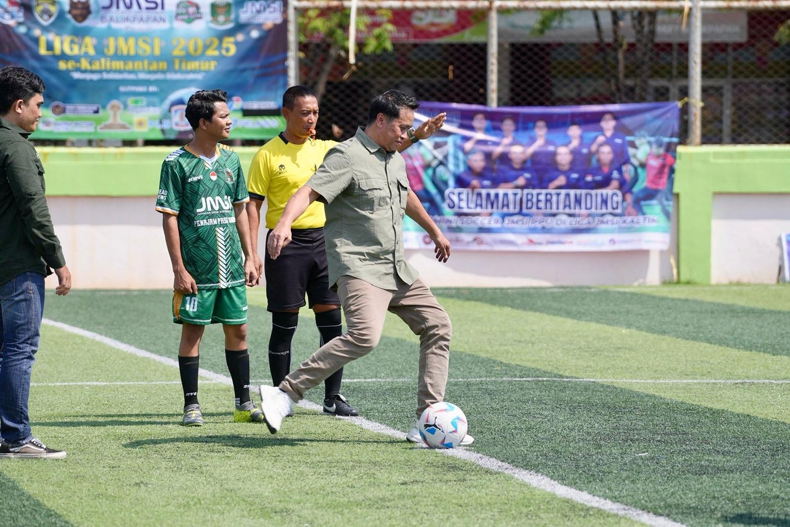 Pembukaan Liga JMSI 2025 ditandai secara resmi dengan penendangan bola pertama oleh Ketua JMSI Kaltim, Mohammad Sukri.