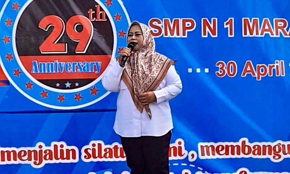 Pernyataan ini disampaikan Kepala Seksi Kesejahteraan Kecamatan Marang Kayu, Lili Herlina, dalam sambutannya pada acara Dies Natalis ke-29 SMPN 1 Marang Kayu yang berlangsung meriah pada Rabu, 30 April 2025.