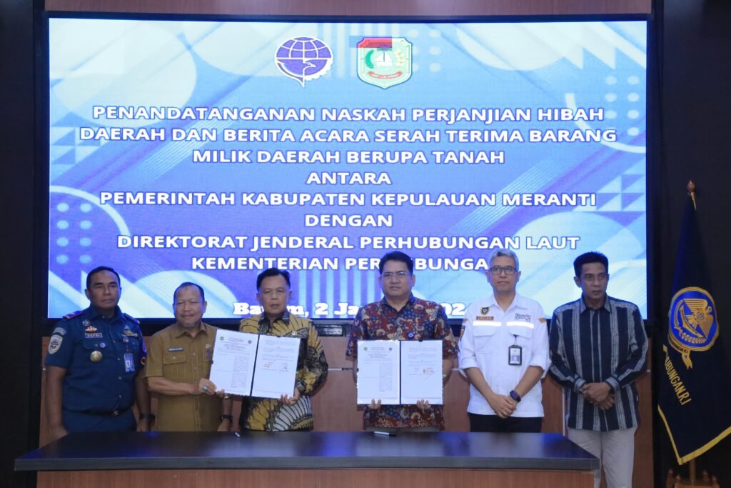 BATAM: Direktorat Jenderal Perhubungan Laut menerima hibah barang milik daerah (BMD), berupa aset tanah seluas 74.324 m2 dari Pemerintah Kabupaten Kepulauan Meranti Provinsi Riau.
