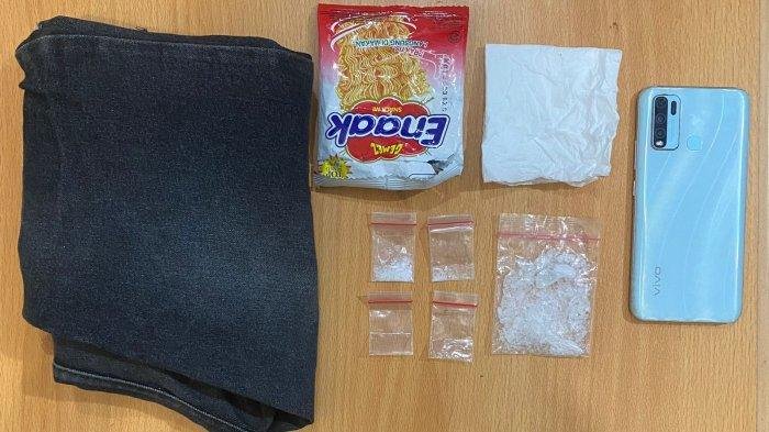 Selain barang bukti sabu, polisi juga menemukan barang bukti lain seperti dua plastik klip, satu helai tisu satu, satu bungkus makanan ringan, satu unit handphon satu buah celana dan satu unit sepeda motor.