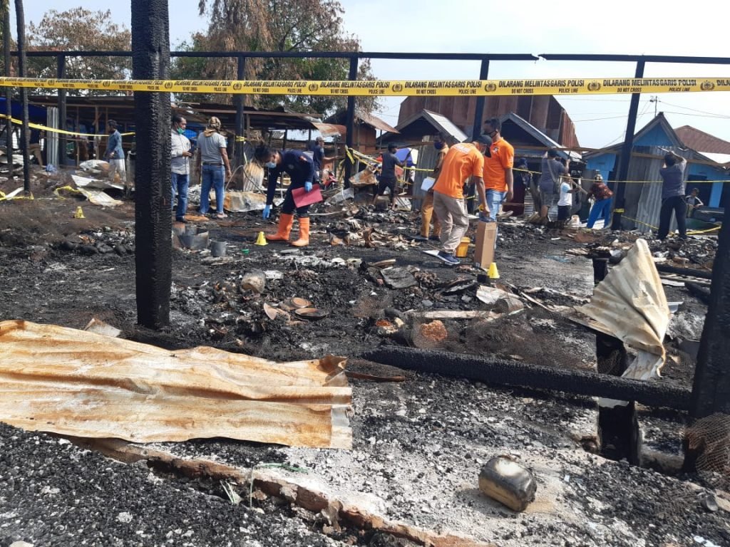 Bontang – Satreskim Polres Bontang melakukan olah TKP (Tempat Kejadian Perkara) terakhir terkait kebakaran di Pasar Loktuan, bersama Tim Laboratorium Forensik ( Labfor) Polda Jawa Timur pasca kebakaran, pada Selasa (16/2/2021).