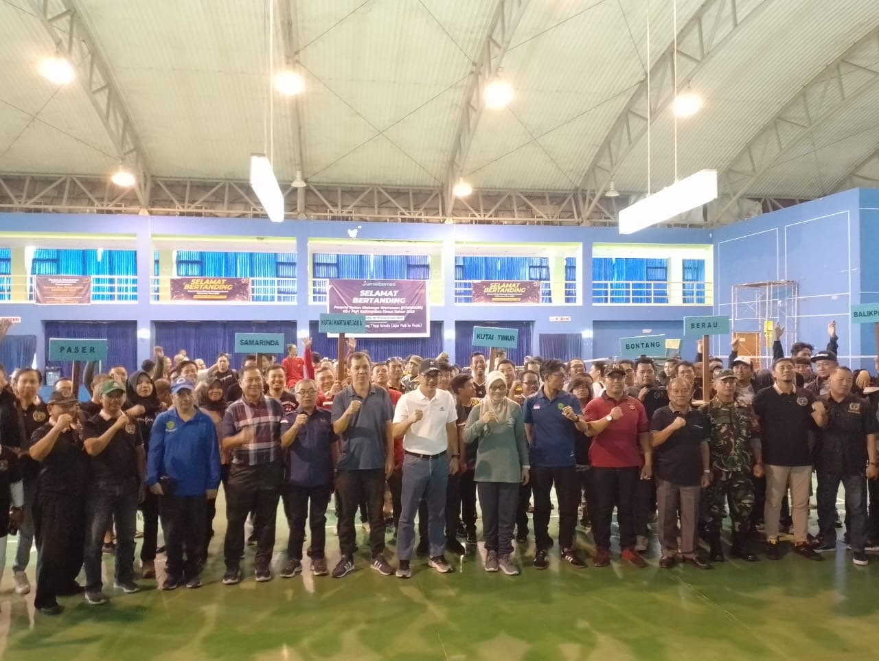 SAMARINDA: Sekretaris Daerah (Sekda) Provinsi Kalimantan Timur (Kaltim) Sri Wahyuni membuka Pekan Olahraga Wartawan Daerah (Porwarda) Kaltim 2023 yang digelar di Gor Latihan II Lapangan Bulu Tangkis, Gor Kadrie Oening Sempaja, Samarinda, Sabtu (16/12/2023).