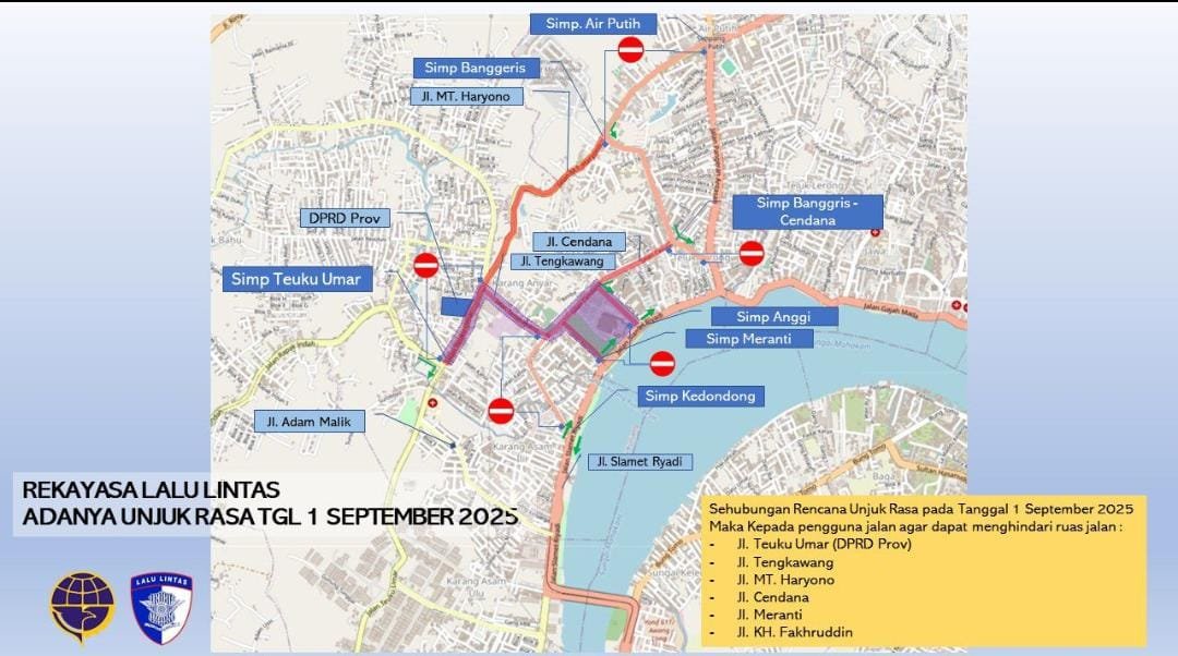 “Untuk kendaraan dari arah Rapak Indah akan kita arahkan menuju Jalan Ir. Sutami, tidak masuk ke Jalan M. Said. Sedangkan yang dari arah Tengkawang kita alihkan menuju Jalan MT Haryono,” jelas La Ode, Minggu, 31 Agustus 2025.