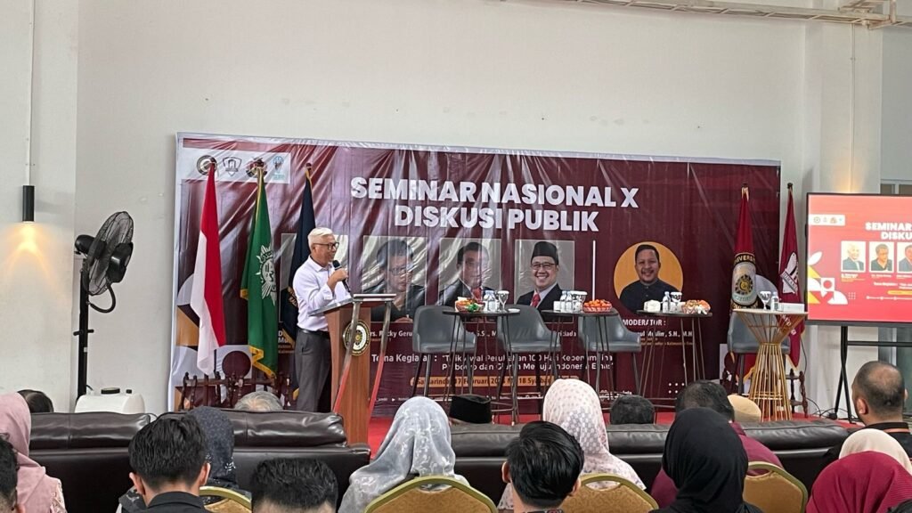 SAMARINDA: Rektor Universitas Muhamadiyah Kalimantan Timur (UMKT) apresiasi Himpunan Mahasiswa Hukum (Himakum), yang berani menghadirkan Rocky Gerung dalam kegiatan seminar nasional, pada 17 Februari 2025.