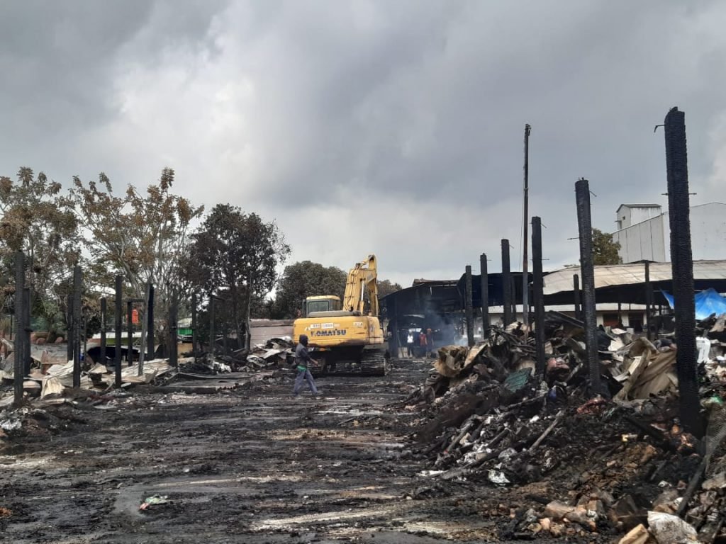 Dari pengamatan media ini tampak beberapa alat berat dikerahkan. Para relawan bahu membahu membersihkan puing-puing seperti potongan kayu, seng, serta barang dagangan yang hangus. Puing-puing itu kemudian dimasukkan ke dalam truk sampah.