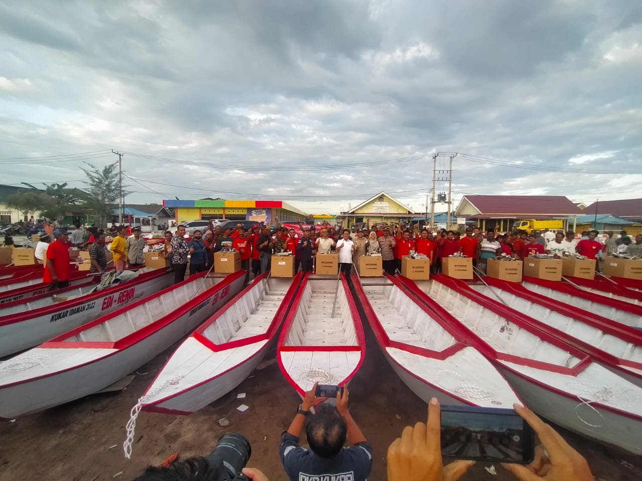 Bantuan diberikan ke 9 kelompok nelayan, dalam 1 kelompok nelayan berjumlah 11 orang, jadi total 99 nelayan mendapatkan bantuan berupa kapal beserta mesinnya.