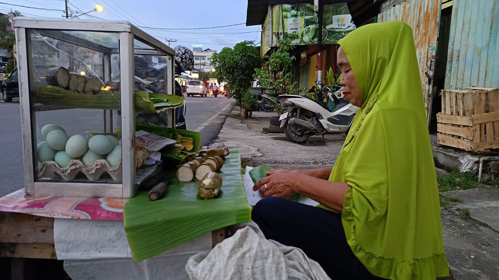 Di tepi jalan yang sibuk di kawasan Pelabuhan Samarinda, tepatnya di Jalan Pulau Sebatik, Saidah (56) telah menjaga tradisi pembuatan lemang selama lebih dari 30 tahun.