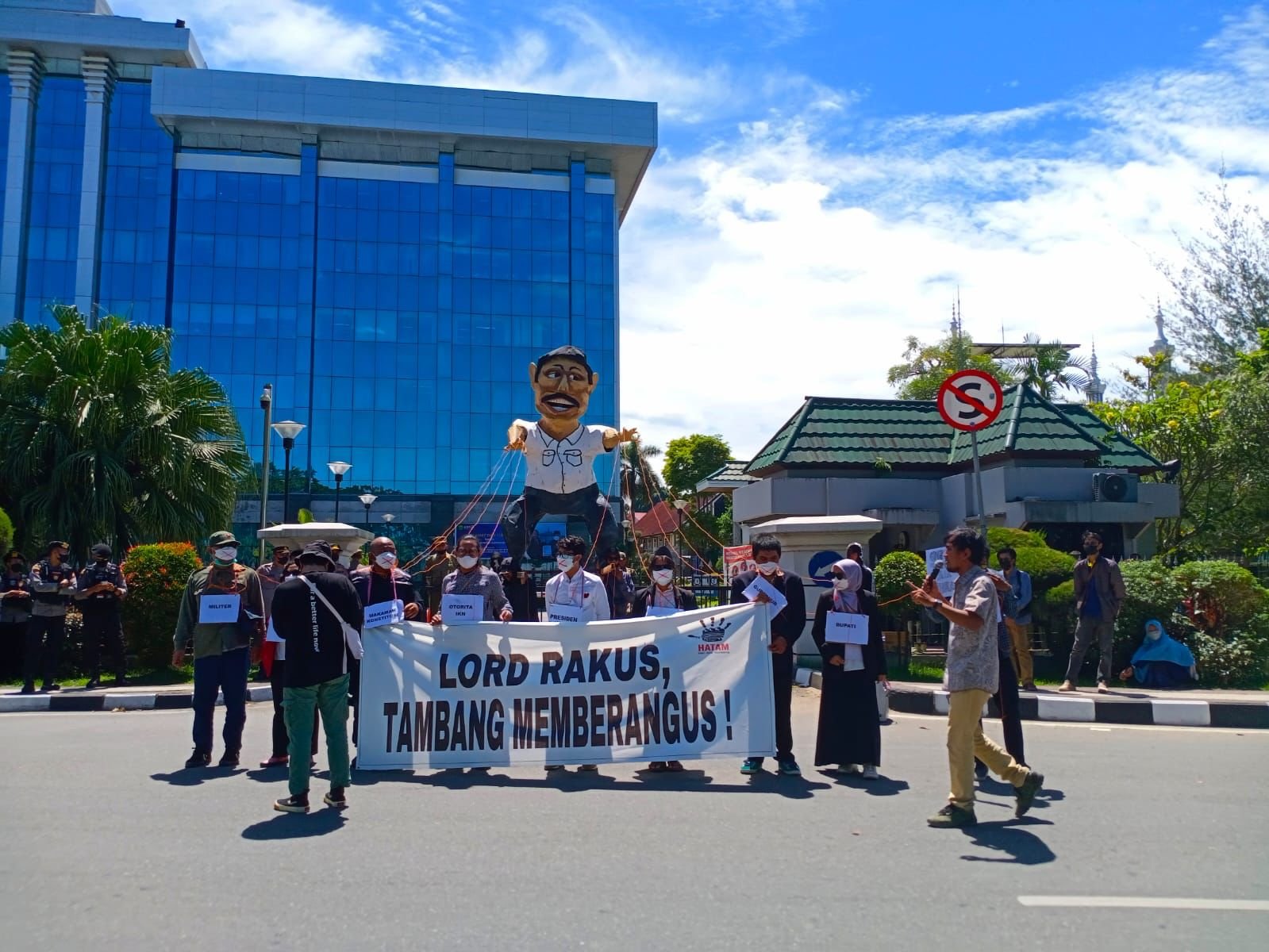 Dinamisator Jaringan Advokasi Tambang (Jatam) Kaltim Pradarma Rupang mengatakan, hari ini, Solidaritas Rakyat Kaltim membawa replika patung yang menyerupai Menteri Koordinator Bidang Kemaritiman dan Investasi Indonesia (Menko Marves) Luhut Binsar Pandjaitan.