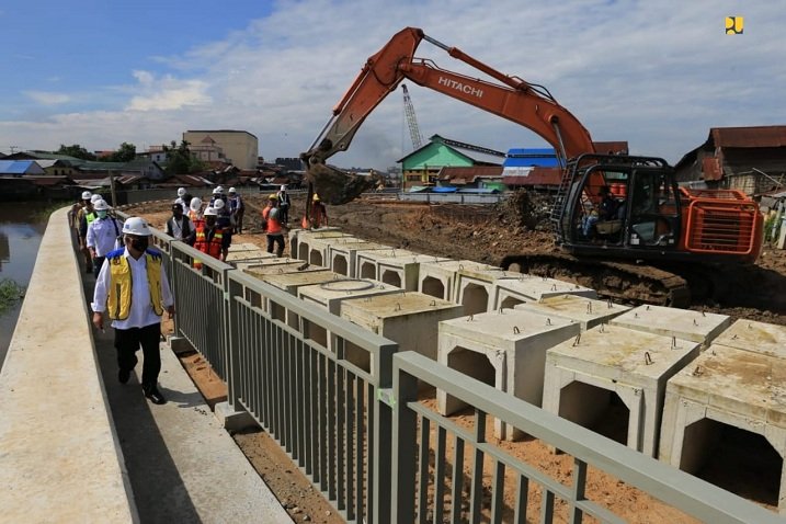 Samarinda – Menteri Pekerjaan Umum dan Perumahan Rakyat (PUPR) Basuki Hadimuljono meninjau penanganan normalisasi Sungai Karang Mumus di sela kunjungannya bersama Presiden RI Joko Widodo (Jokowi) ke Kalimantan Timur (Kaltim), Selasa (24/8/2021).