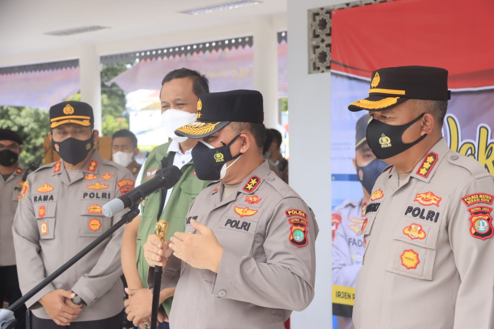 Bekasi–Kepala Kepolisian Daerah (Kapolda) Metro Jaya, Irjen Polisi Fadil Imran bersama Pelaksana Tugas (Plt) Wali Kota Bekasi, Tri Adhianto melihat jalannya proses vaksinasi yang dilaksanakan oleh Polres Metro Bekasi Kota di Pendopo Alun-alun, Rabu (23/2/2022) pagi.
