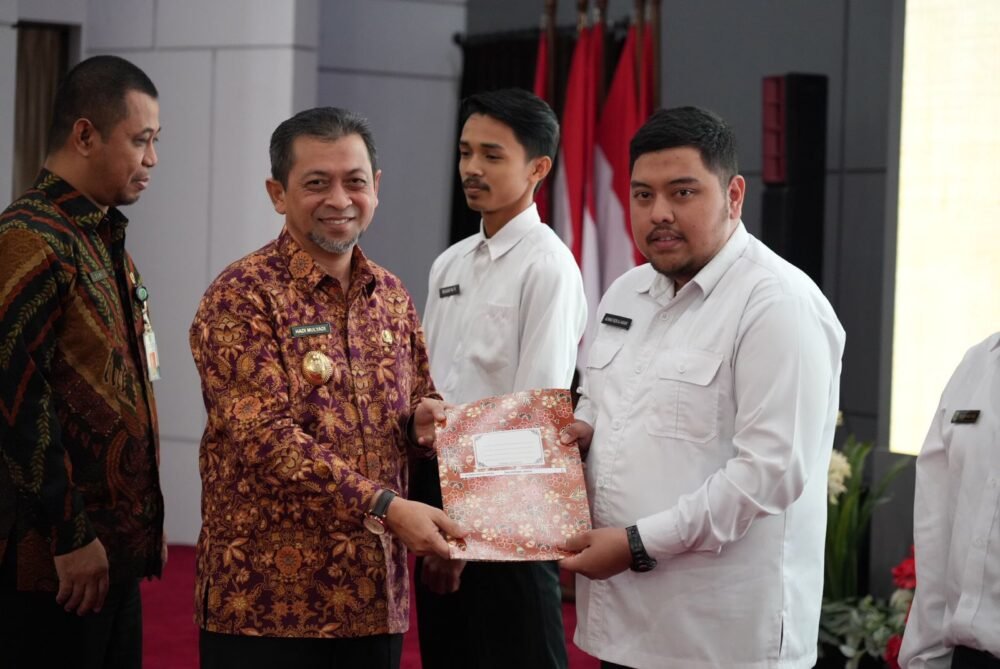 Wagub secara simbolis menyerahkan SK pengangkatan yang telah ditandatangani oleh Gubernur Kaltim, Isran Noor, kepada 446 calon PPPK.