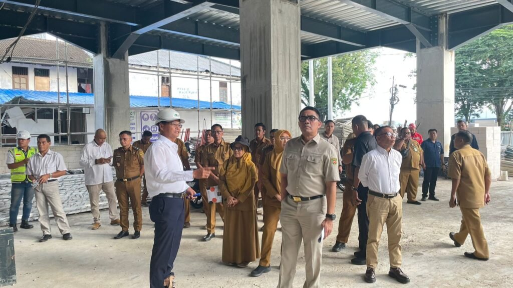 Wali Kota Samarinda, Andi Harun lakukan tinjauan teknis untuk melihat perkembangan pembangunan fisik pasar pagi.